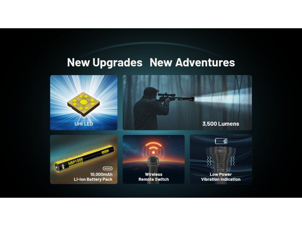 Elitné taktické svietidlo s výkonom 3500 lúmenov a rekordným dosvitom 1,3 km. V balení s bezdrôtovou diaľkovou spúšťou a 10 000 mAh batériou je MH40 Pro dokonalým nástrojom pre poľovníkov a záchranné zložky.