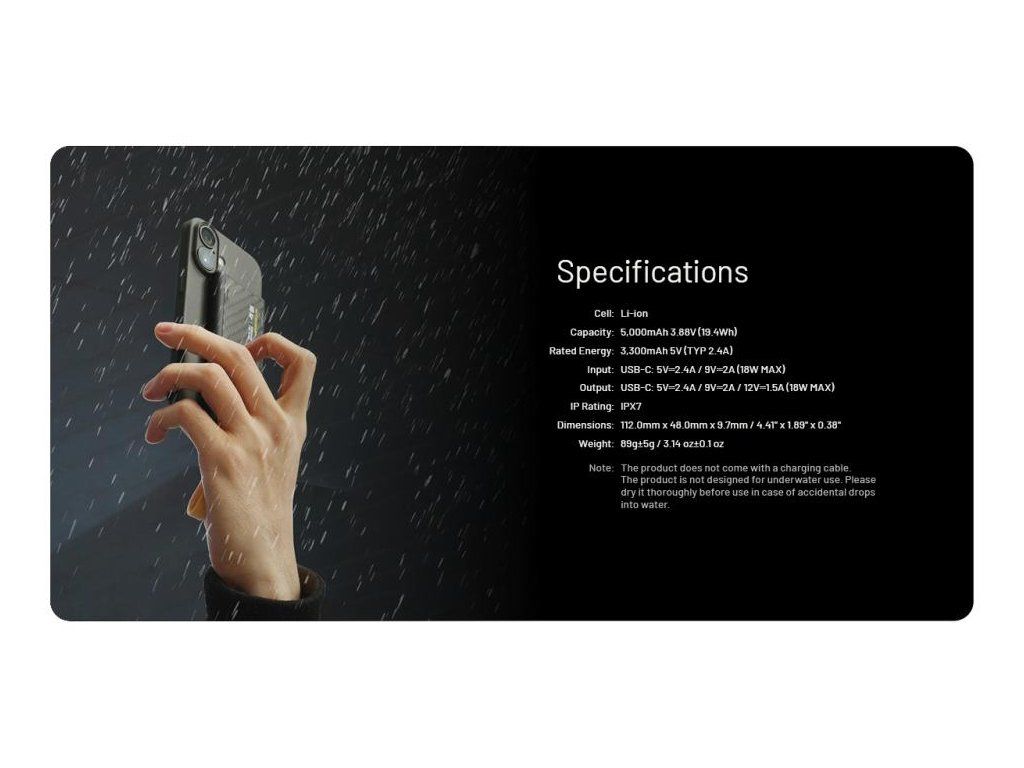 Najľahšia 5000mAh powerbanka na svete z uhlíkových vlákien. Váži len 105g, podporuje 20W PD rýchlonabíjanie a vďaka odolnosti IPX5 je ideálna pre turistiku a outdoor.