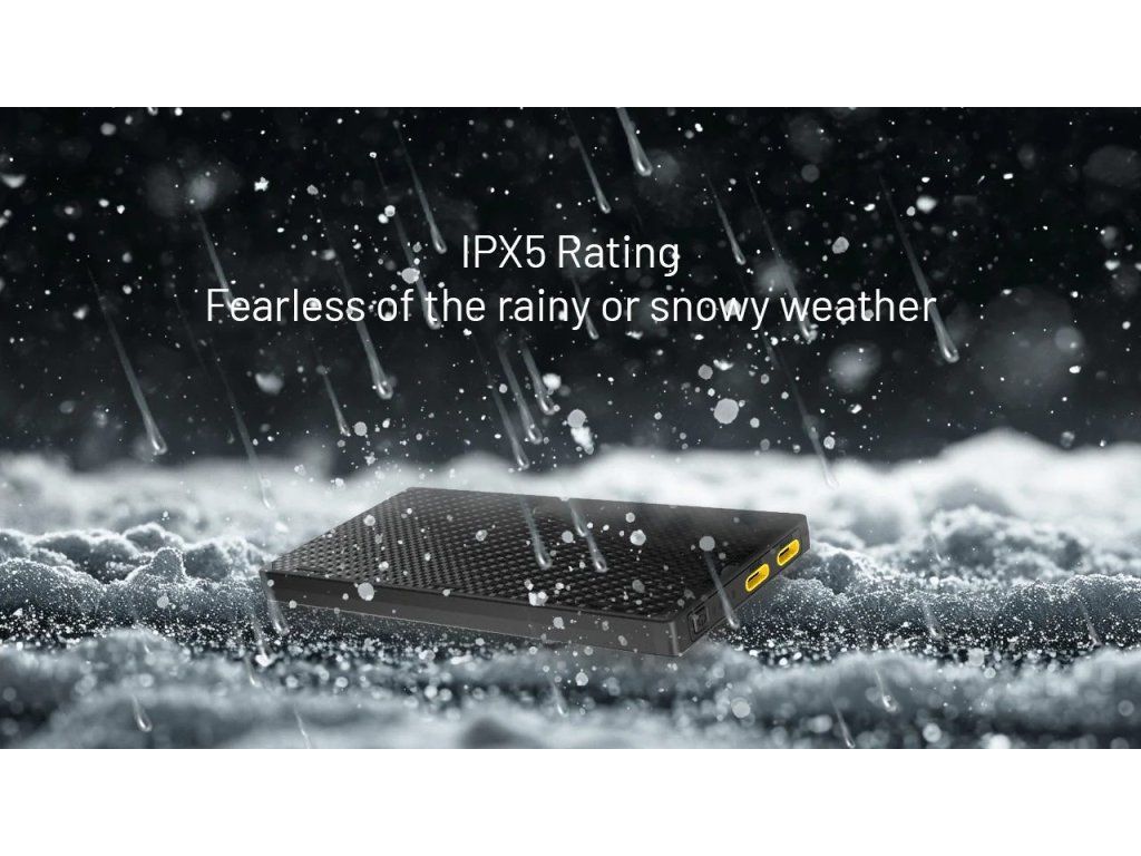 - IPX5 Odolnosť – certifikovaná ochrana proti dažďu a striekajúcej vode pre bezpečný outdoorový provoz.