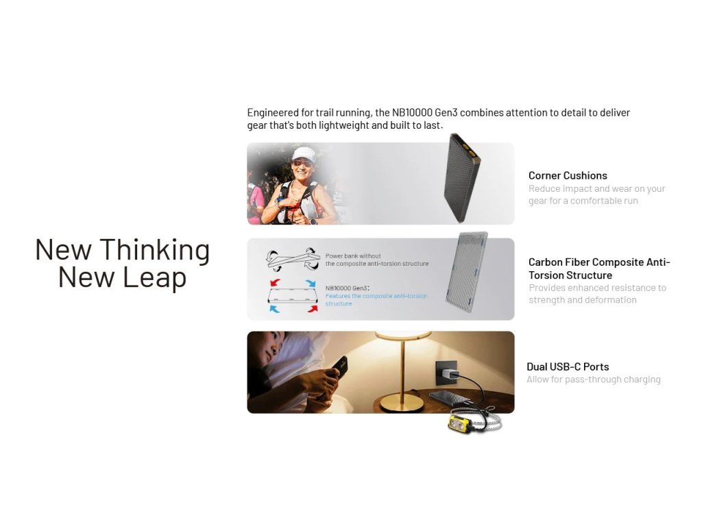 “ NB10000 zostáva zlatým štandardom pre ultralight turistov. Verzia GEN3 so symetrickými USB-C portami konečne prináša moderný štandard do tohto najľahšieho tela na trhu. ” – ZeroAir (prejsť na recenziu)