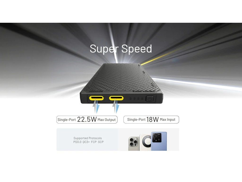 Dostatočná kapacita na prežitie celého dňa mimo siete bez toho, aby ste vo vrecku cítili ťažkú „tehlu“. GEN3 verzia s dvomi portami eliminuje potrebu nosiť rôzne typy káblov pre staršie konektory.