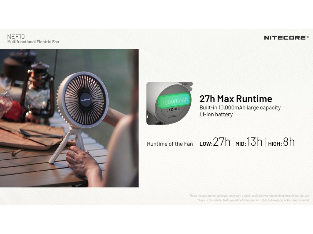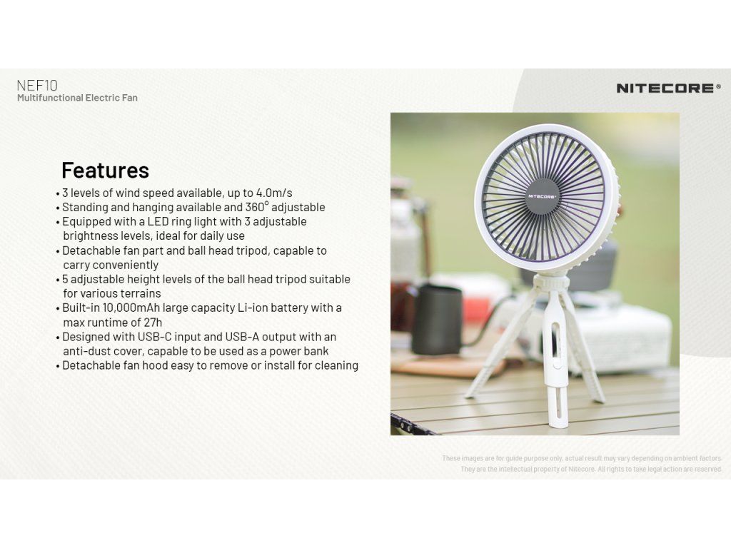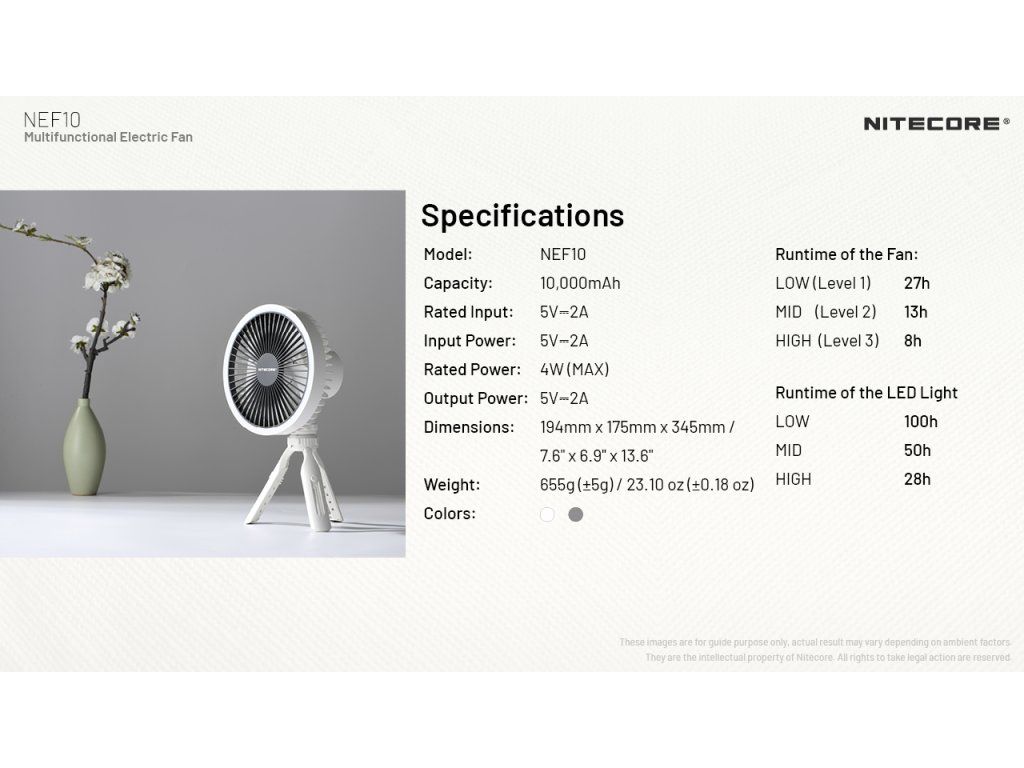 Nitecore NEF10 10 000 mAh – Prenosný ventilátor s LED svetlom a powerbankou 10 000 mAh | 27h výdrž | LED svetlo | Powerbanka | Statív