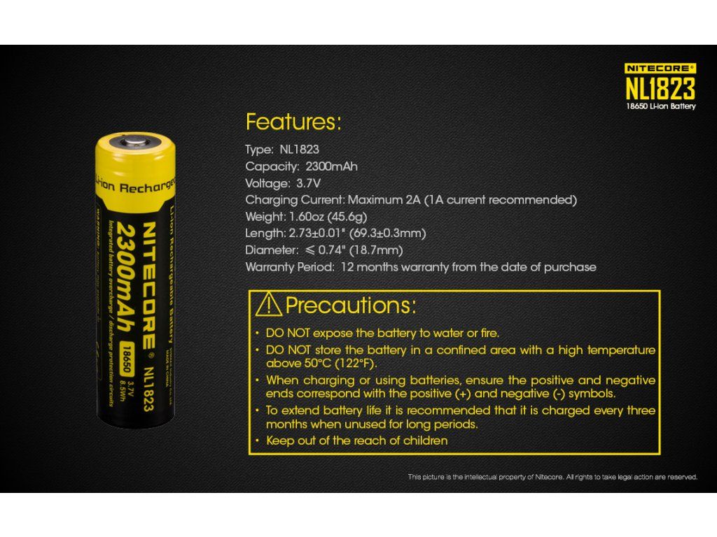 TECHNICKÁ ŠPECIFIKÁCIA Nitecore NL1823: