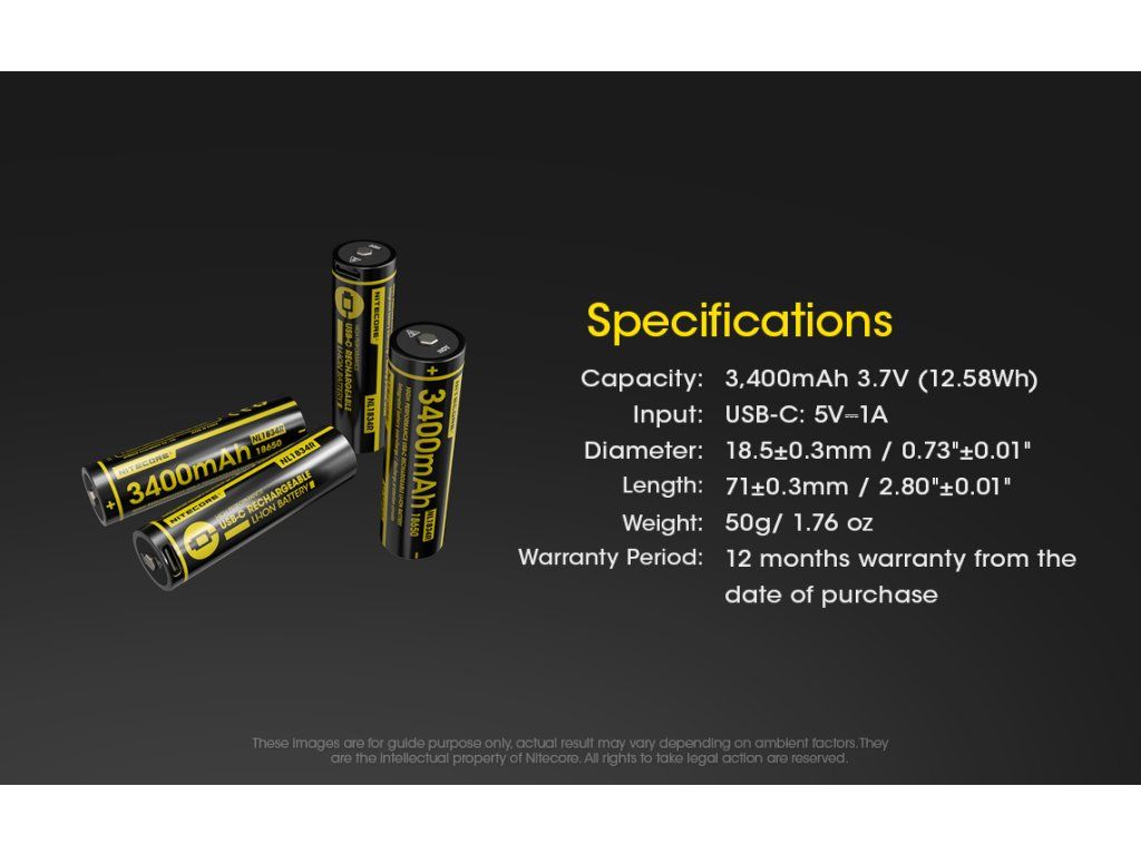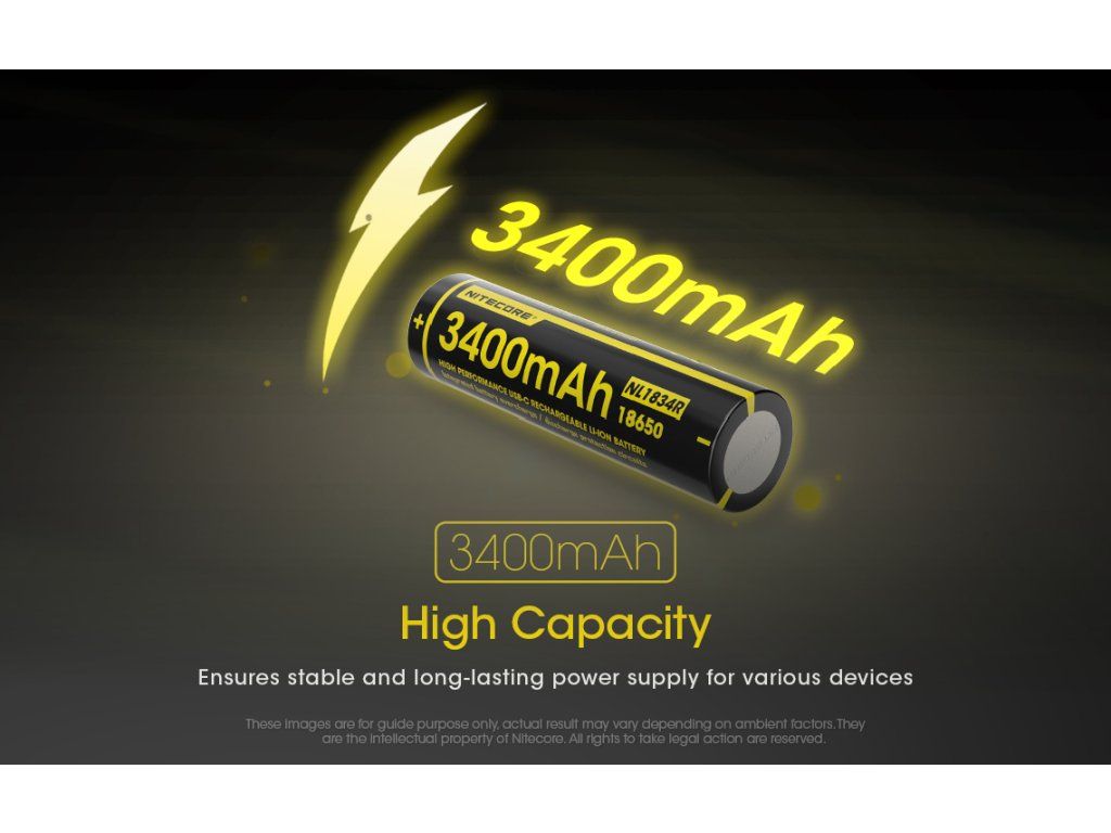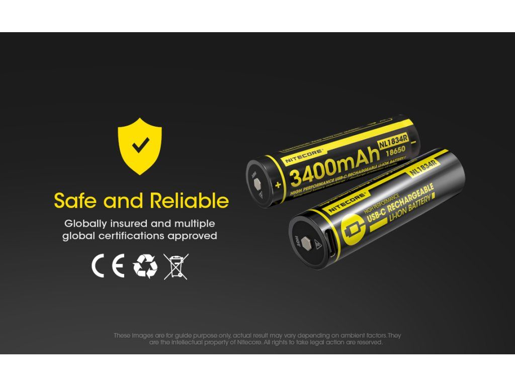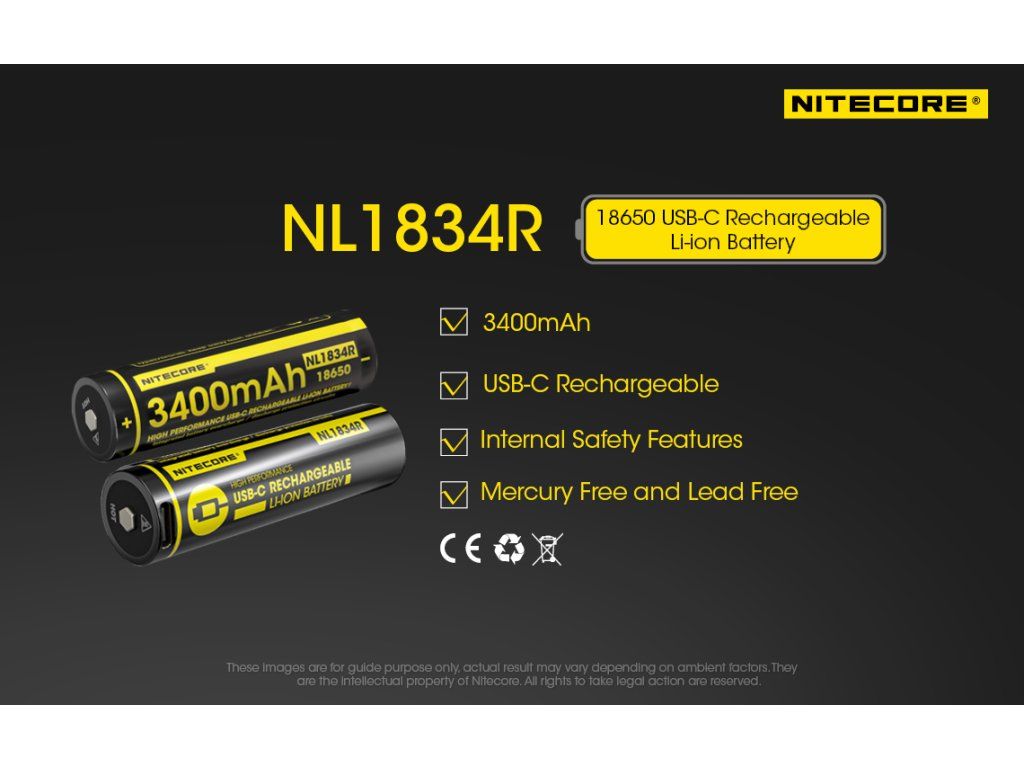 Nitecore NL1834R 3400mAh 3,7V Li-ion – Akumulátor s USB-C nabíjaním 3400 mAh | USB-C nabíjanie | Li-ion 18650 | Ochrana PCB