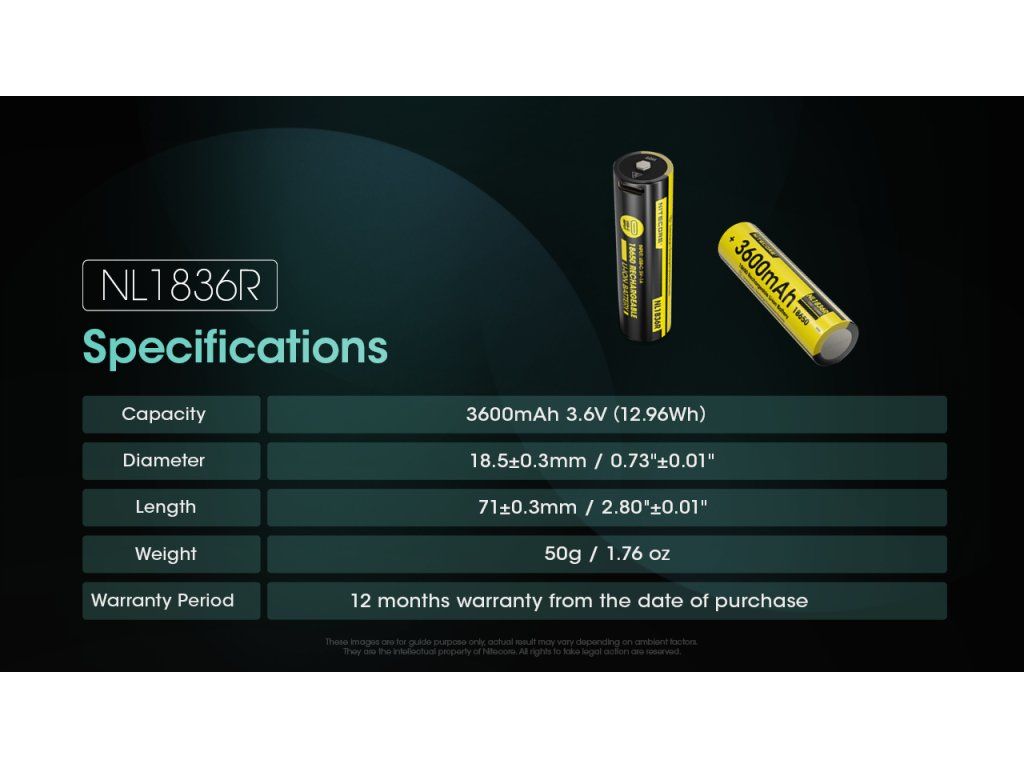 TECHNICKÁ ŠPECIFIKÁCIA Nitecore NL1836R: