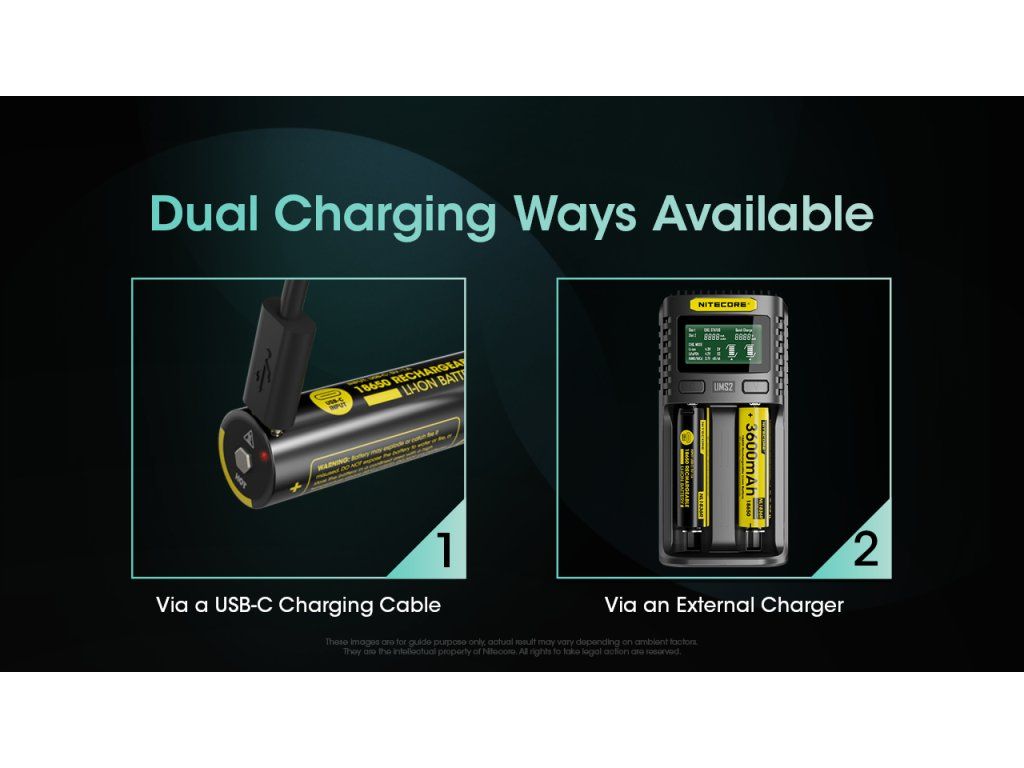 Môžem tento akumulátor nabíjať aj v bežnej nabíjačke? Áno, NL1836R je kompatibilný aj s klasickými externými nabíjačkami pre Li-ion články (napr. séria Nitecore SC, UM, UMS). USB-C je len pridaná možnosť.