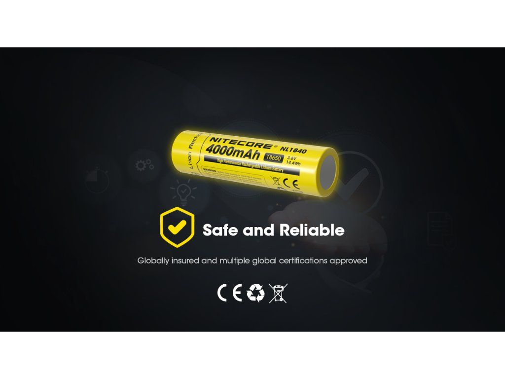 Nitecore NL1840 4000mAh 18650 – Akumulátor s extrémnou výdržou a ochranou 4000 mAh | 3,6 V | Li-ion | Ochrana PCB | 18650