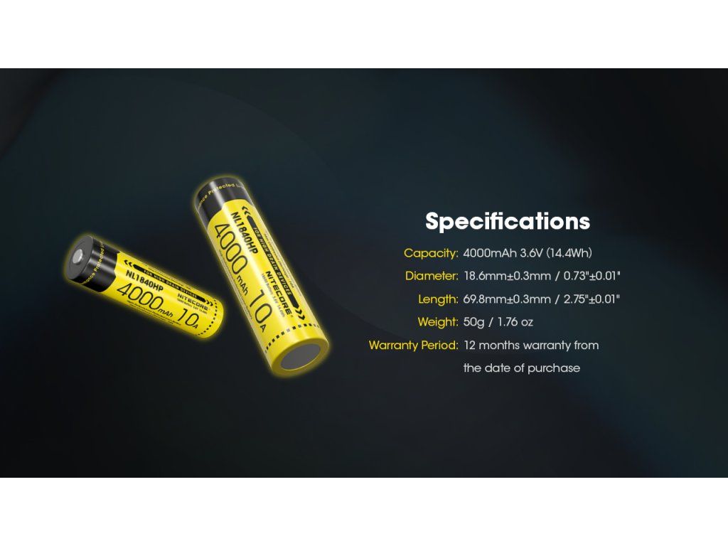 TECHNICKÁ ŠPECIFIKÁCIA Nitecore NL1840HP: