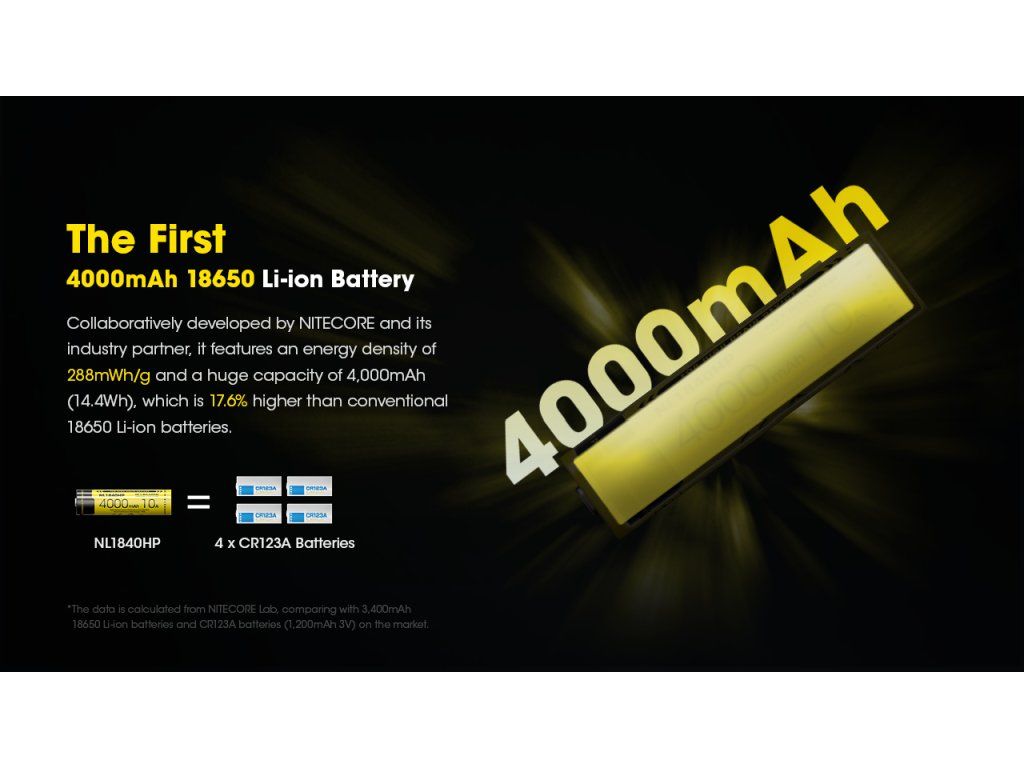 “ Nitecore NL1840HP je momentálne kráľom kapacity. V našich testoch reálne dosahuje deklarované hodnoty a 10A vybíjací prúd je viac než dostatočný pre 95 % moderných 18650 svietidiel na trhu. ” – 1Lumen (prejsť na recenziu)
