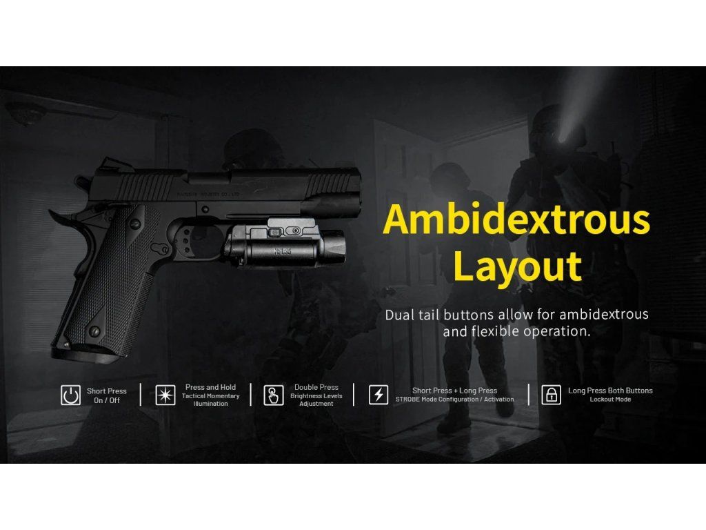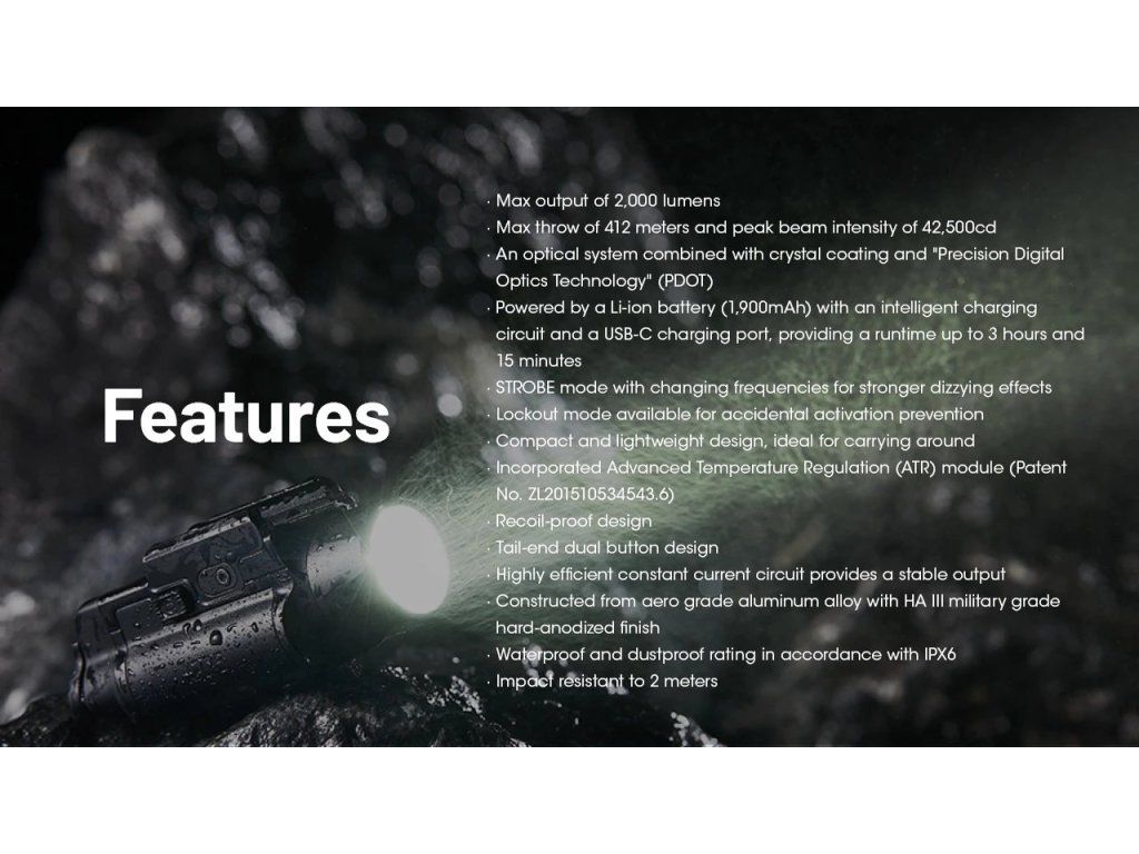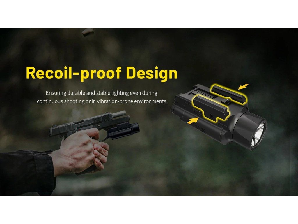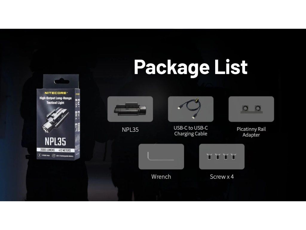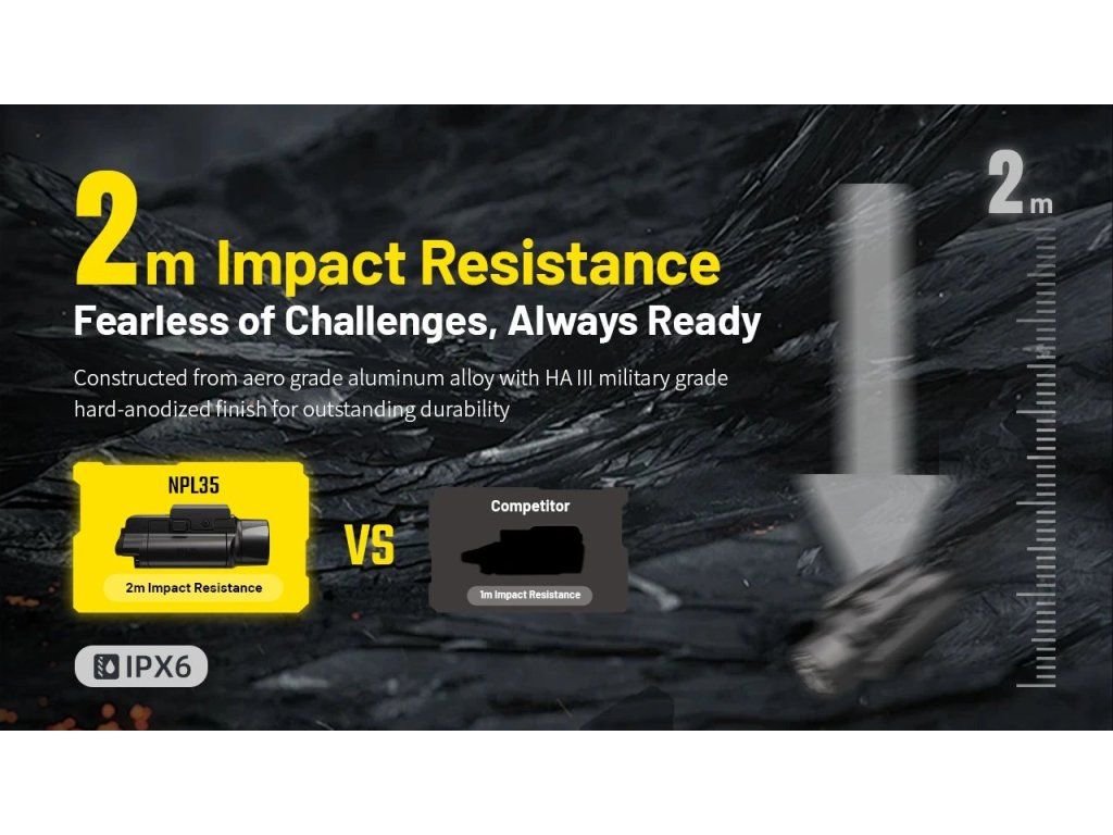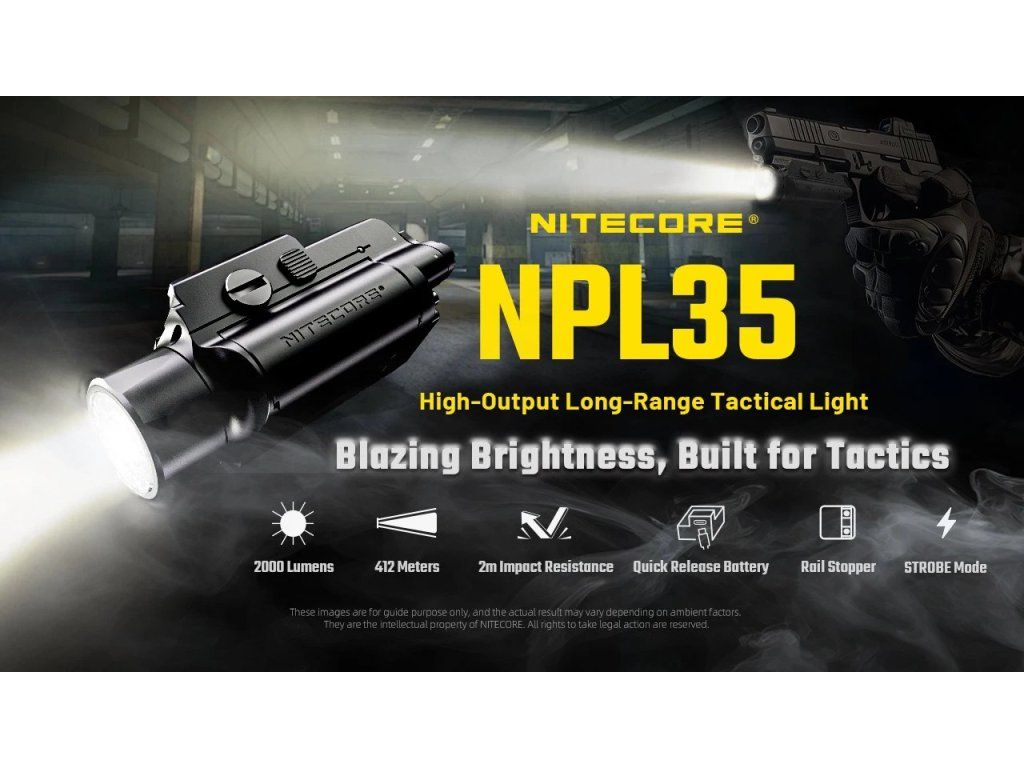 Nitecore NPL35 2000 lm – Taktické zbraňové svietidlo, dosvit 412 m, 1900 mAh 2000 lm | 412 m | 1900 mAh | IP67 | Taktický stroboskop