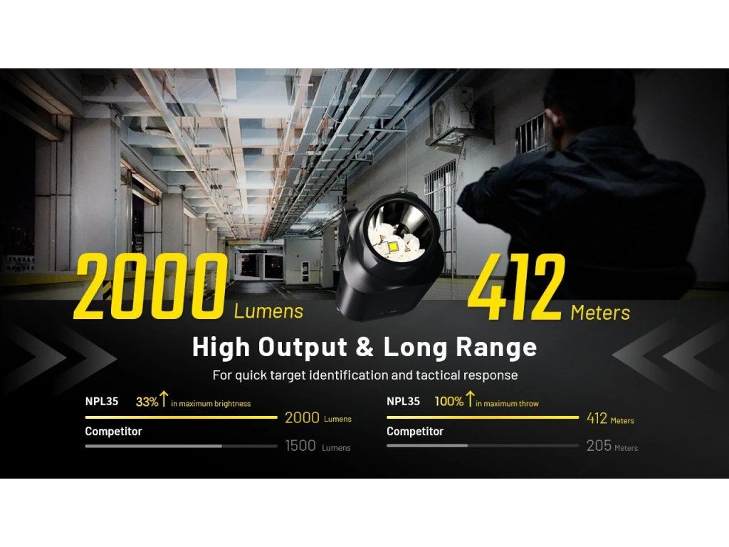 Nitecore NPL35 2000 lm – Taktická dominancia s dosvitom 412 m a 1900 mAh energiou