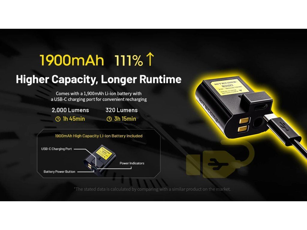 “ Kapacita 1900 mAh je v tejto triede citeľným plusom. Svietidlo drží Turbo režim dlhšie než konkurenti s klasickými batériami. ” – ZeroAir (prejsť na recenziu)