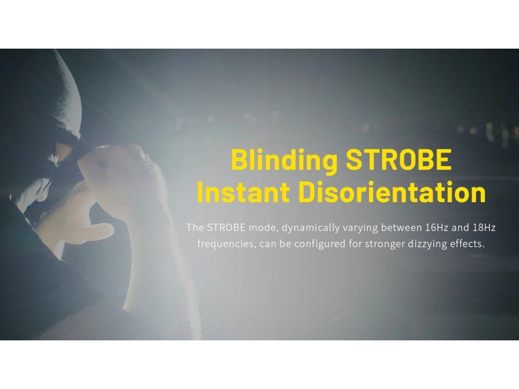 Áno, Nitecore využíva náhodne meniteľnú frekvenciu stroboskopu pre maximálny dezorientačný účinok.