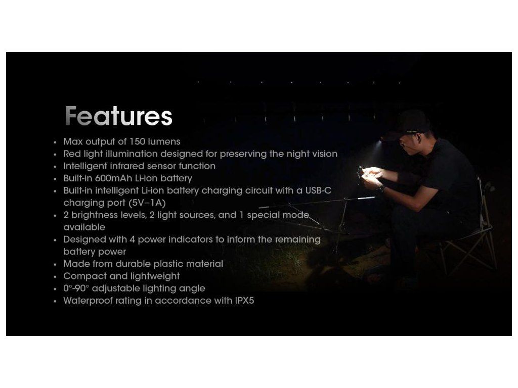 Ultraľahká klipová čelovka s výkonom 150 lm a revolučným IR senzorom pre bezdotykové ovládanie. Ideálna na šiltovku pre rybárov, kutilov a outdoor, s USB-C nabíjaním a červeným svetlom.