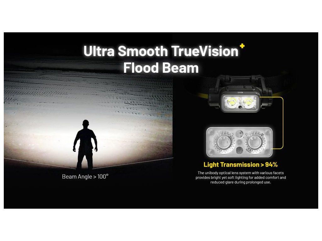 Nitecore NU45 využíva pokročilý systém šošoviek z jedného kusu, ktorý minimalizuje straty svetla a zabezpečuje viac ako 94 % priepustnosť. Tento systém kombinuje diaľkový lúč (Spotlight) pre osvetlenie vzdialených objektov a širokouhlý lúč (Floodlight) s uhlom 100 stupňov, ktorý pokrýva celé zorné pole človeka. Výsledkom je prirodzené osvetlenie bez rušivých artefaktov.