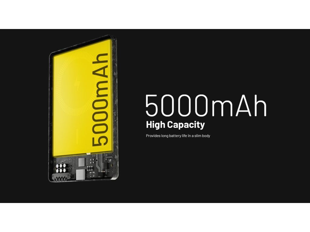 - Kapacita 5000 mAh postačuje na jedno plné nabitie väčšiny smartfónov.