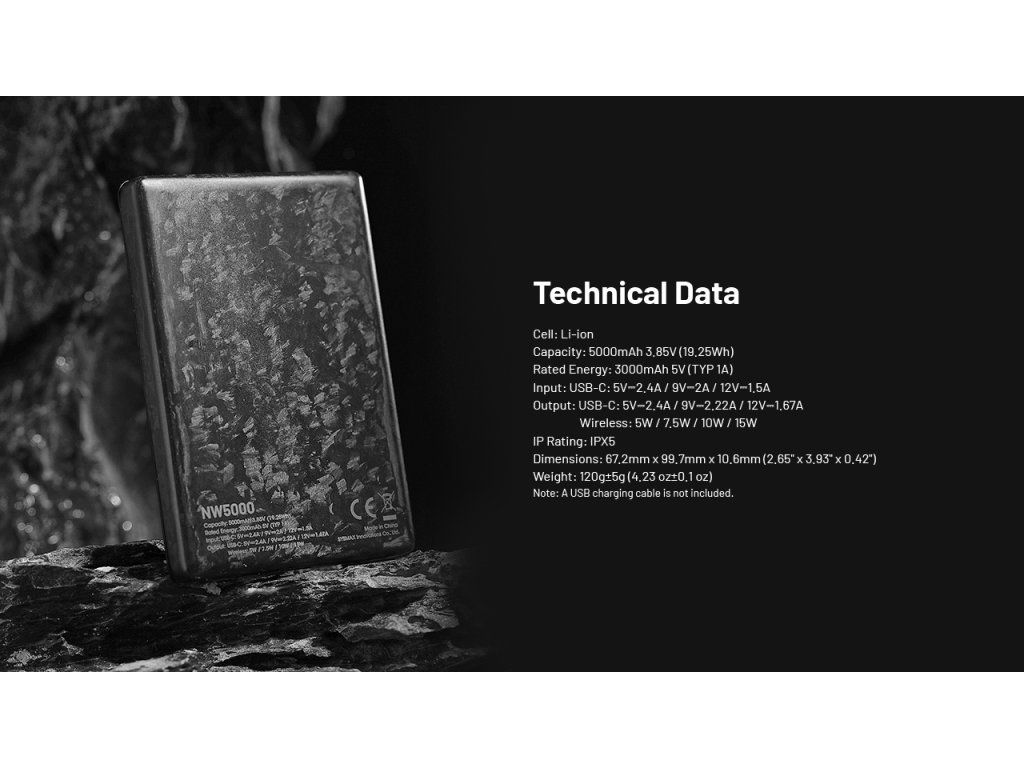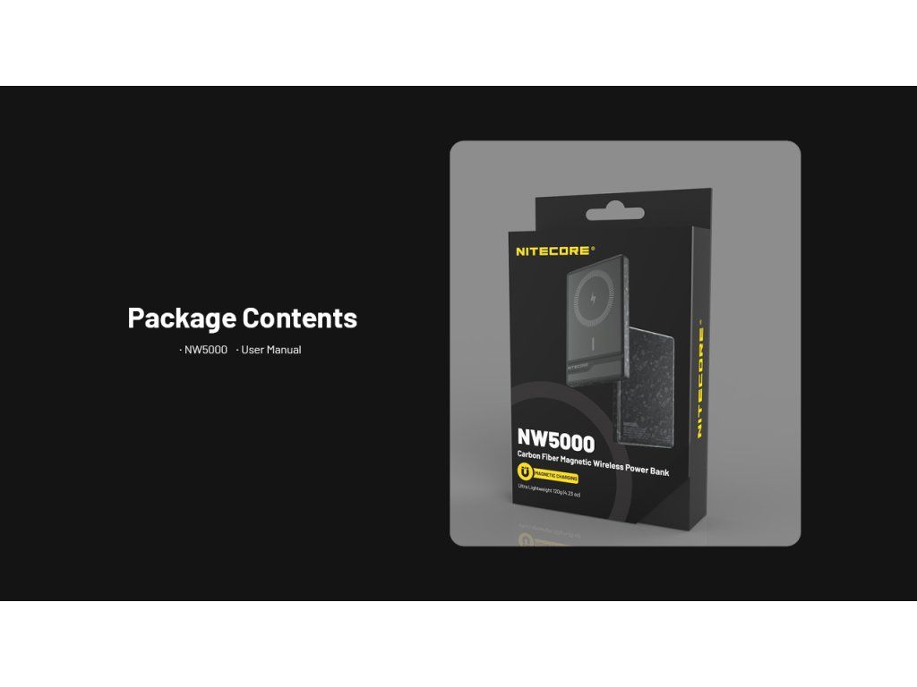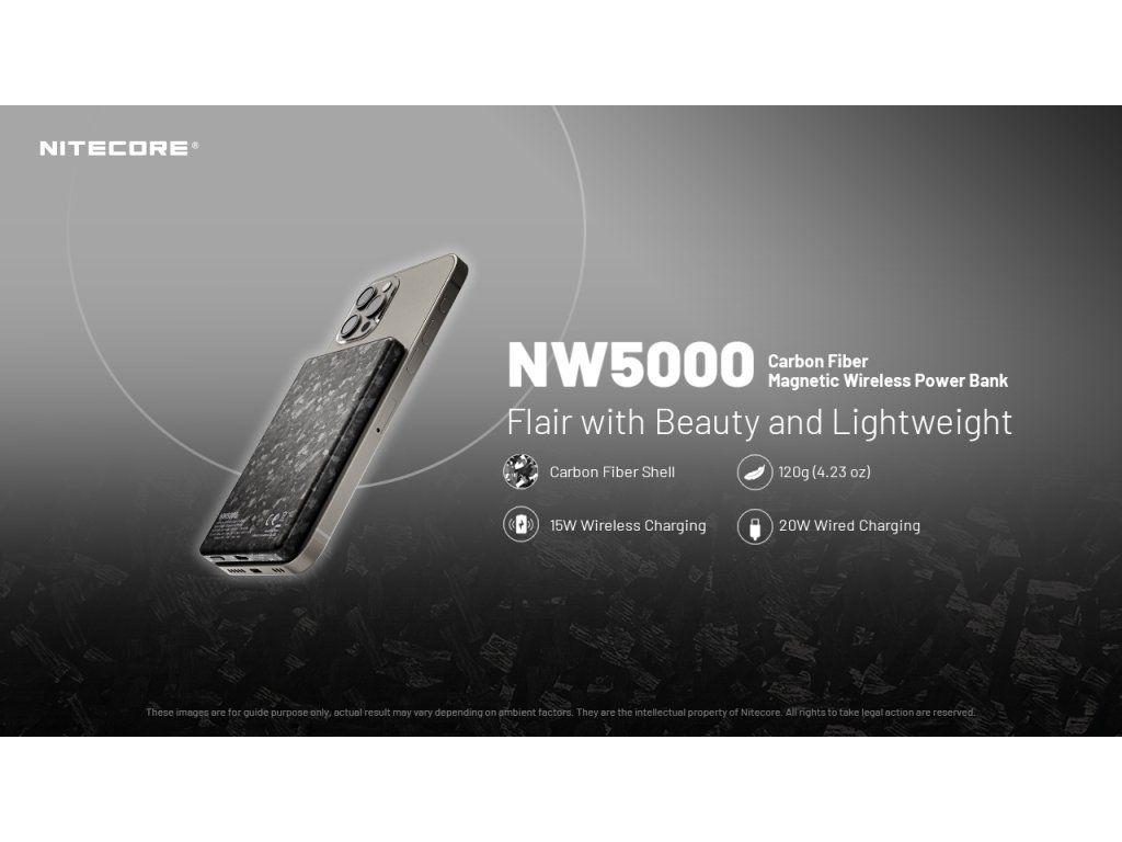 Nitecore NW5000 5000 mAh – Ultra-tenká MagSafe powerbanka z kovaného karbónu 5000 mAh | 15W MagSafe | Karbónové telo | IPX5