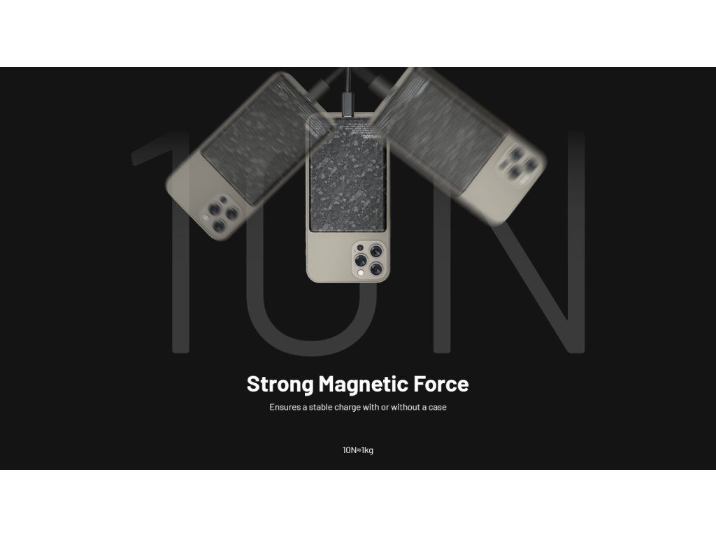 Luxusná magnetická powerbanka s hrúbkou iba 9,5 mm vyrobená z kovaného karbónu. Ponúka 15W bezdrôtové MagSafe nabíjanie a 20W USB-C PD výstup v ultra-ľahkom 120g tele.