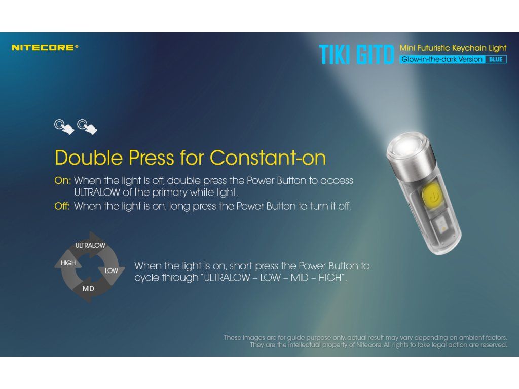 KĽÚČOVÉ VLASTNOSTI Nitecore TIKI GITD Blue: