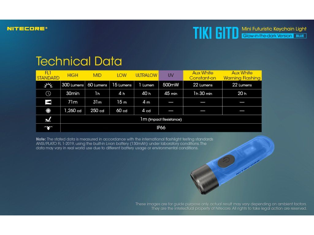 TECHNICKÁ ŠPECIFIKÁCIA Nitecore TIKI GITD Blue: