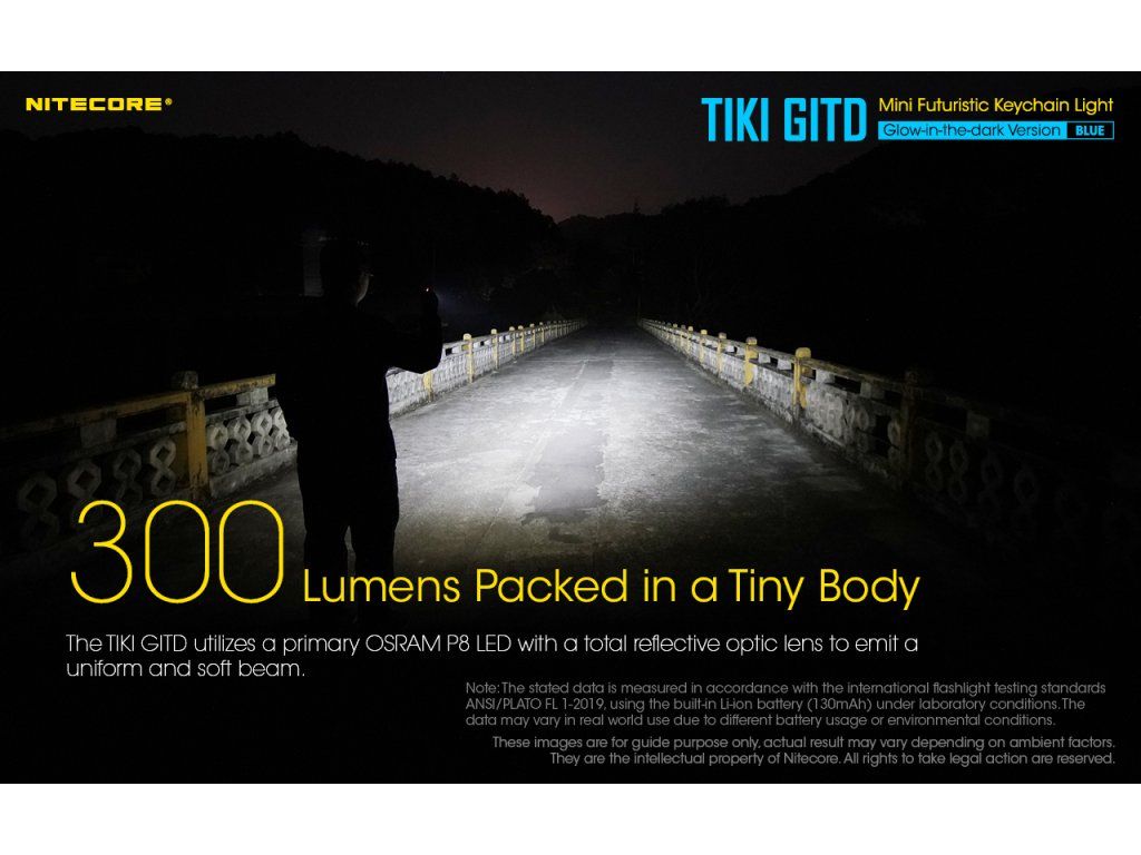 Nitecore TIKI GITD Blue 300 lm – Miniatúrna sila s fosforovým telom