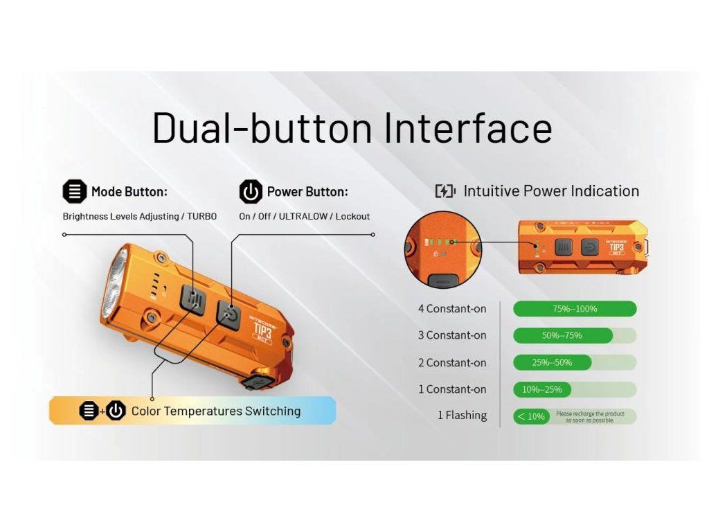 Profesionálne odporúčanie iLed.sk: Čierna verzia Nitecore TIP3 je klasikou, ktorá nikdy nevyjde z módy. Ak hľadáte niečo, čo ľahšie nájdete v tráve, zvážte Nitecore TIP3 v oranžovej farbe. Nezabudnite využiť multifunkčný klip, ktorý chráni tlačidlá pred náhodným zapnutím vo vrecku.
