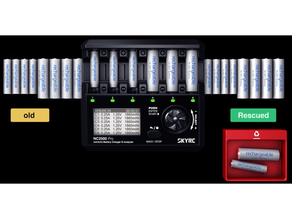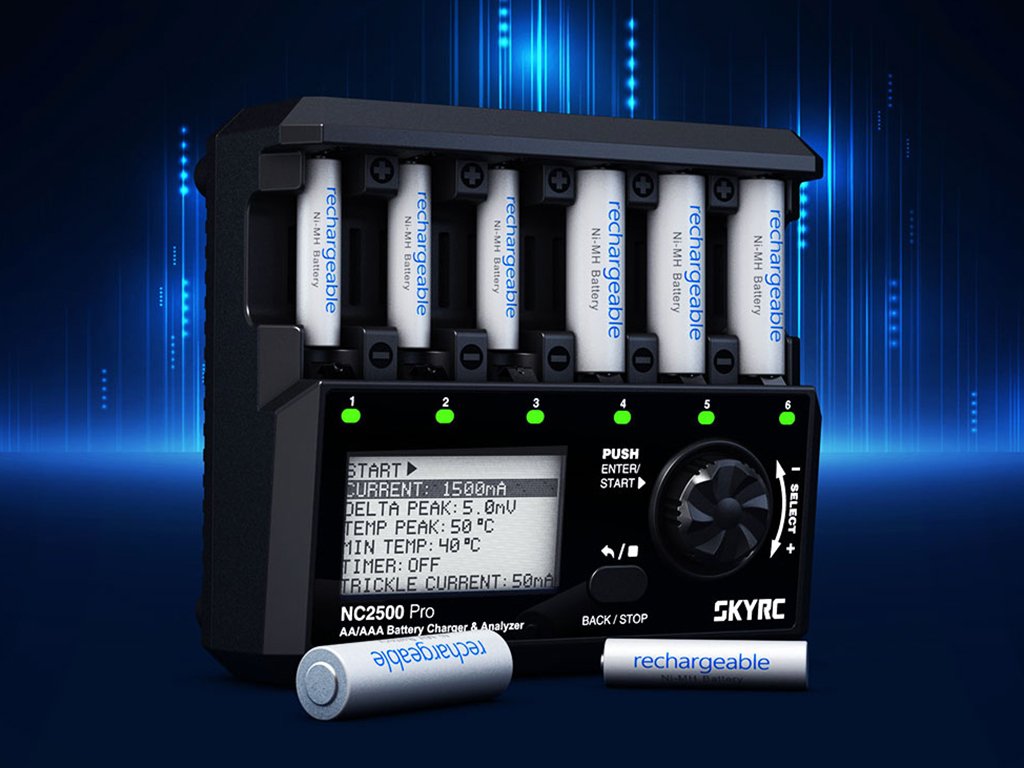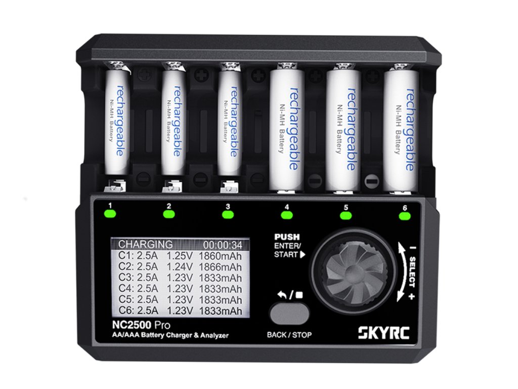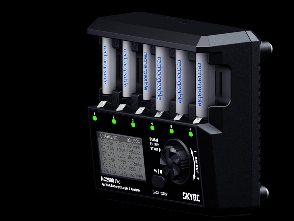 SkyRC NC2500 Pro je viac-kanálová nabíjačka s analyzérom batérií pre nabíjateľné články formátu AA a AAA NiMH/NiCd.