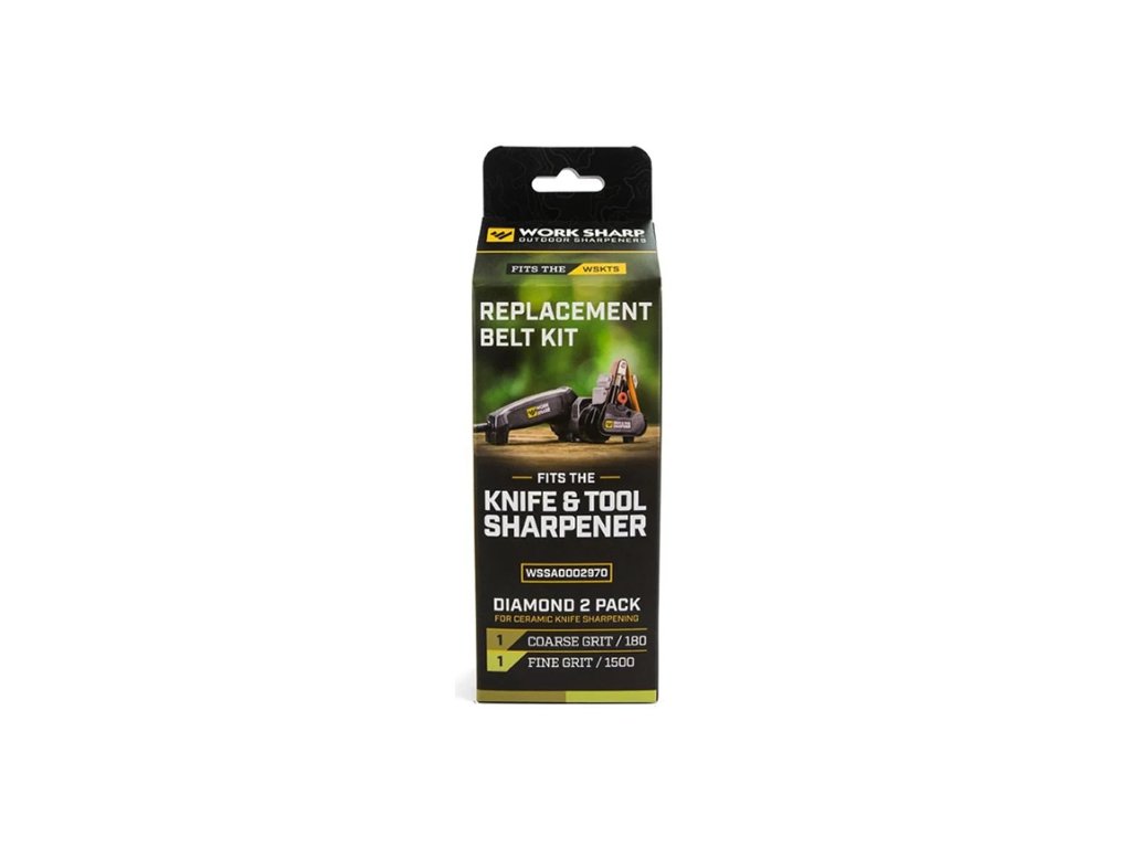 Originálne náhradné diamantové brúsne pásy sú určené pre špeciálnu opravu, brúsenie a hľadenie keramických nožov. K brúsnym pásom je vhodná brúska WSKTS-I Work Sharp KTS. Súprava obsahuje jeden hrubý diamantový pás (180 zrnitostí) na opravu keramických nožov a jeden jemný diamantový pás (1500 zrnitosti) na hľadenie a ostrenie keramických nožov.