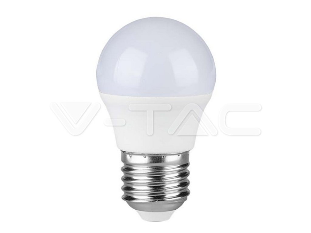 Jedná sa o vysoko výkonnú a kvalitnú LED žiarovku, od popredného svetového výrobcu V-TAC. E27 žiarovky sú kryté mliečnym sklom a sú náhradou za klasickú halogénovú (vláknovú) žiarovku. LED žiarovky sú charakteristické svojou čistou farbou, vysokou efektívnosťou a oveľa väčšiou odolnosťou voči vonkajším vplyvom. Čo sa týka veľkosti sú dokonale kompatibilné. Telo LED žiarovky je zhotovené z termoplastu, ktorý zaručuje dostatočné chladenie a odvod tepla z LED žiarovky. V žiarovke sú použité najmodernejšie čipy SMD. Spotrebuje len 4,5W elektrickej energie a dokonale nahradia 40W bežnú žiarovku. Oproti iným led žiarovkam má veľky vyžarovací uhoľ, vďaka čomu osvetlí celé okolie rovnomerne.